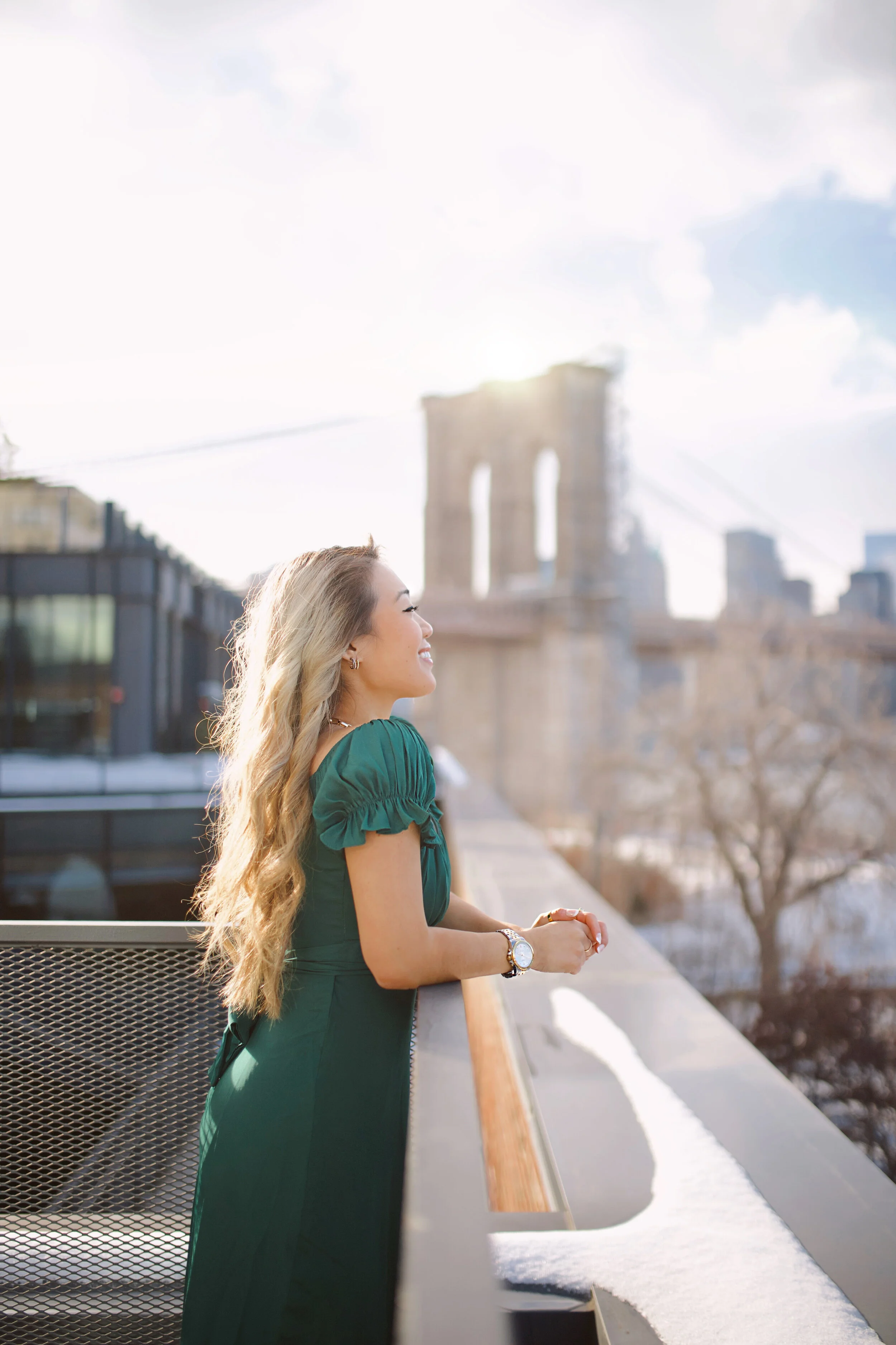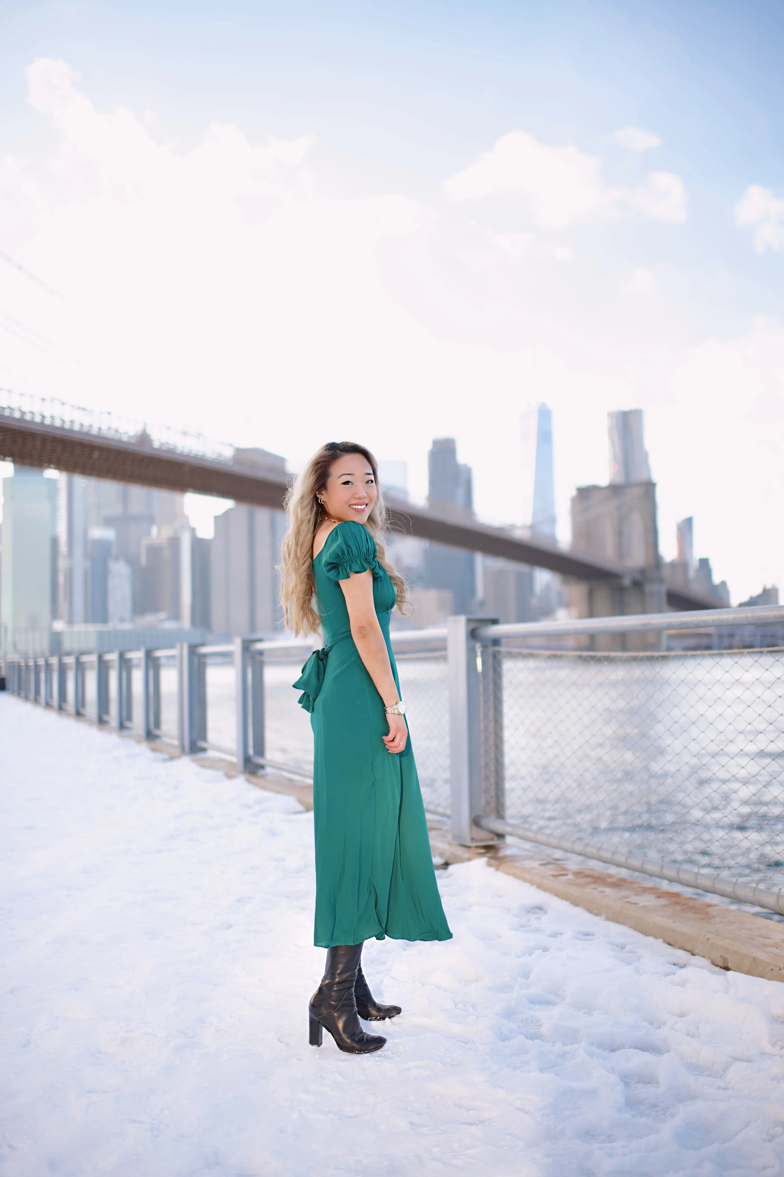 WEARING: green dress ℅ | necklace | Via Spiga boots |