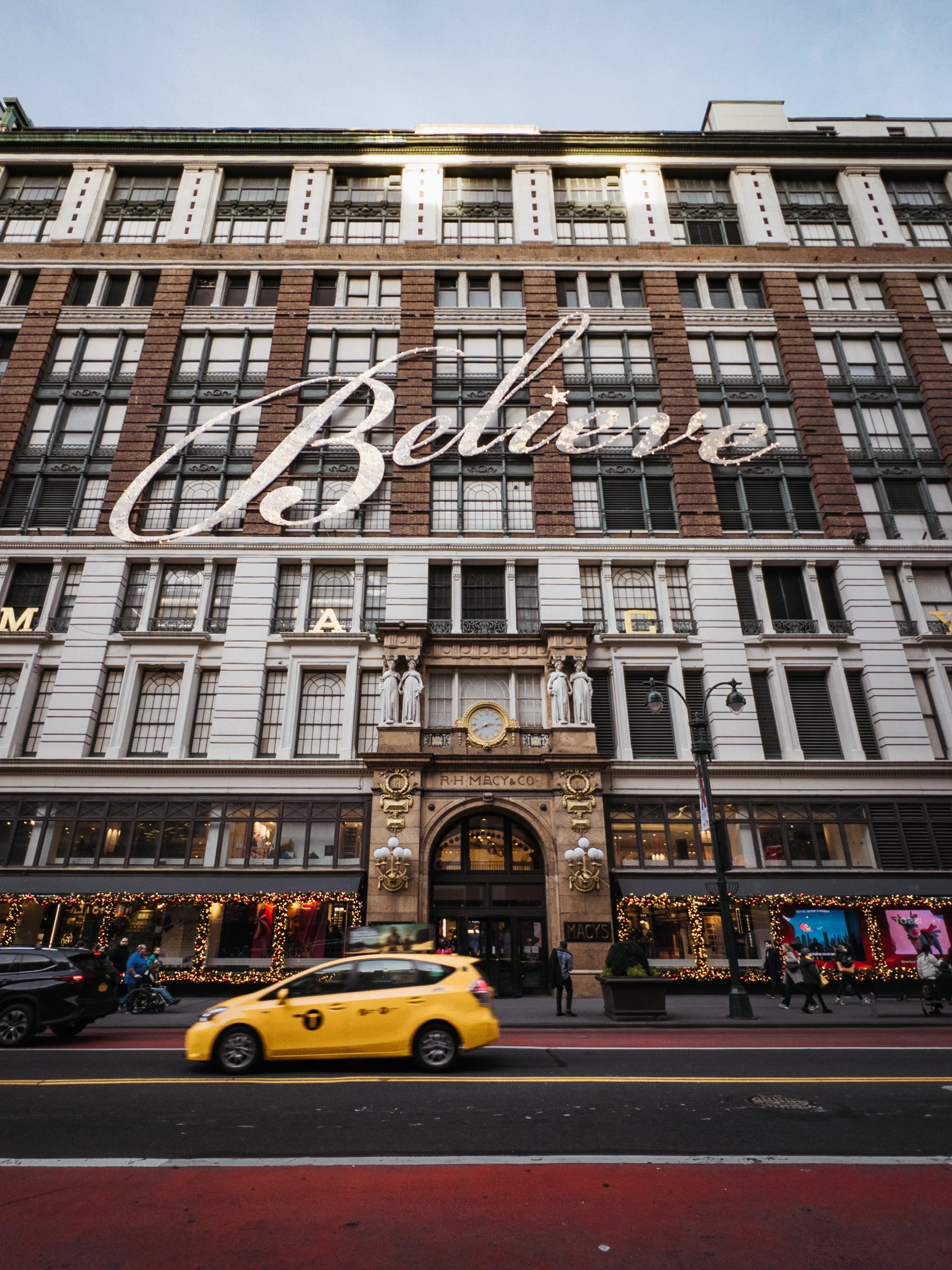 The ‘Believe’ sign sits above the entrance to Macy’s flagship store on 34th Street, located in Midtown.