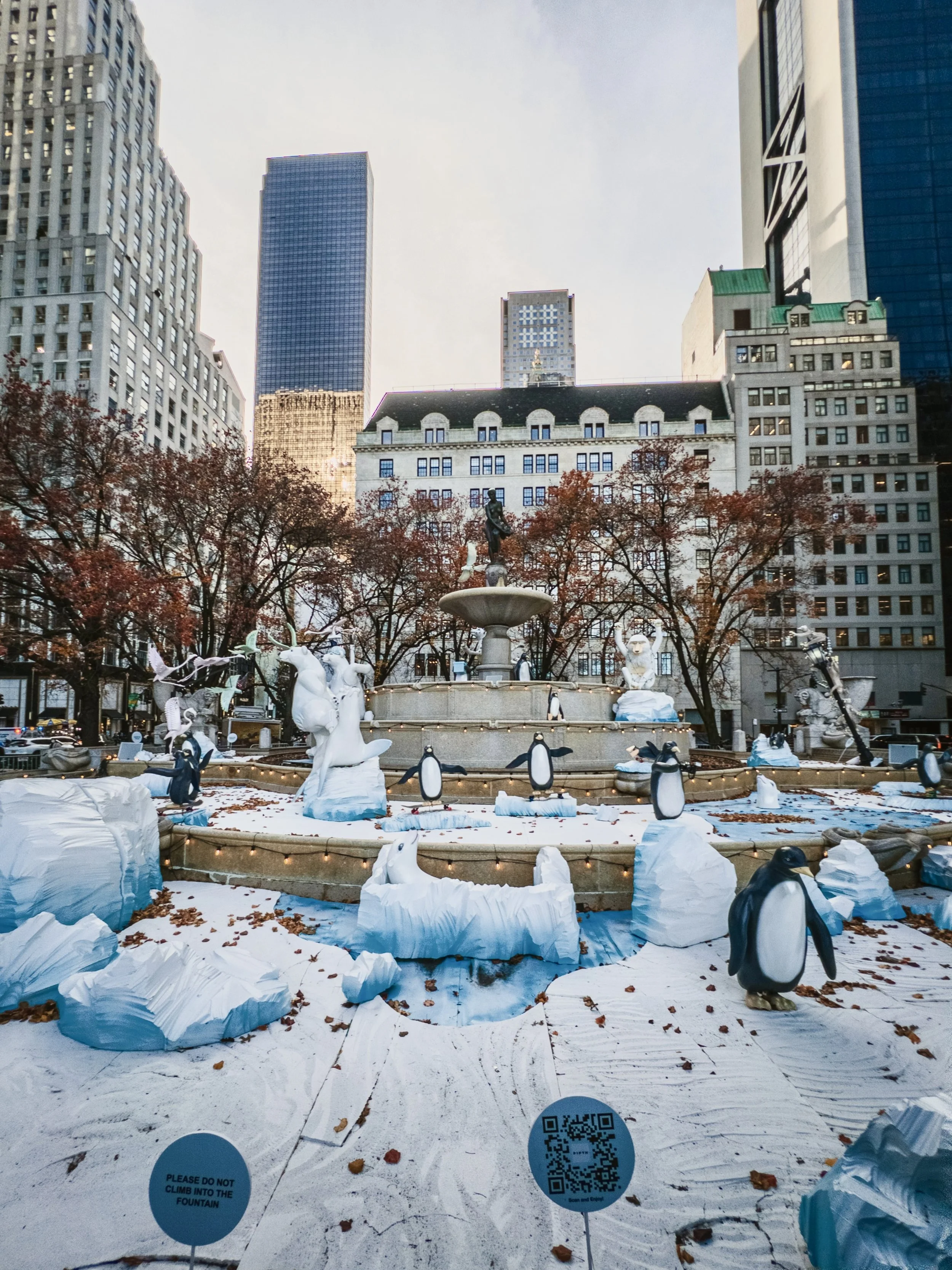 I’ve only discovered this spot more recently last year when they had giant ornaments in and around the Pulitzer Fountain. This year, there’s polar bears, monkeys, and penguins decorating the Fountain.