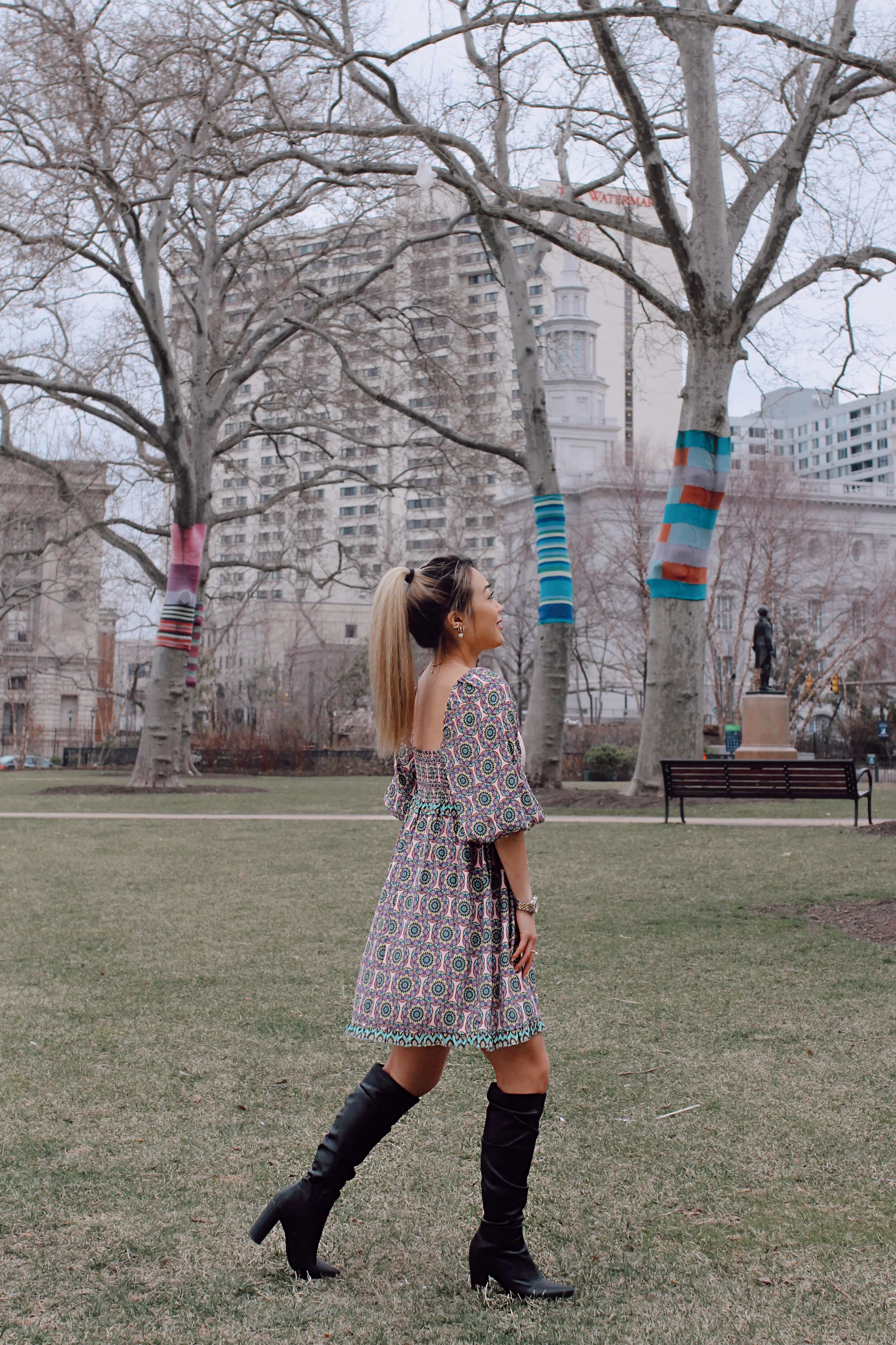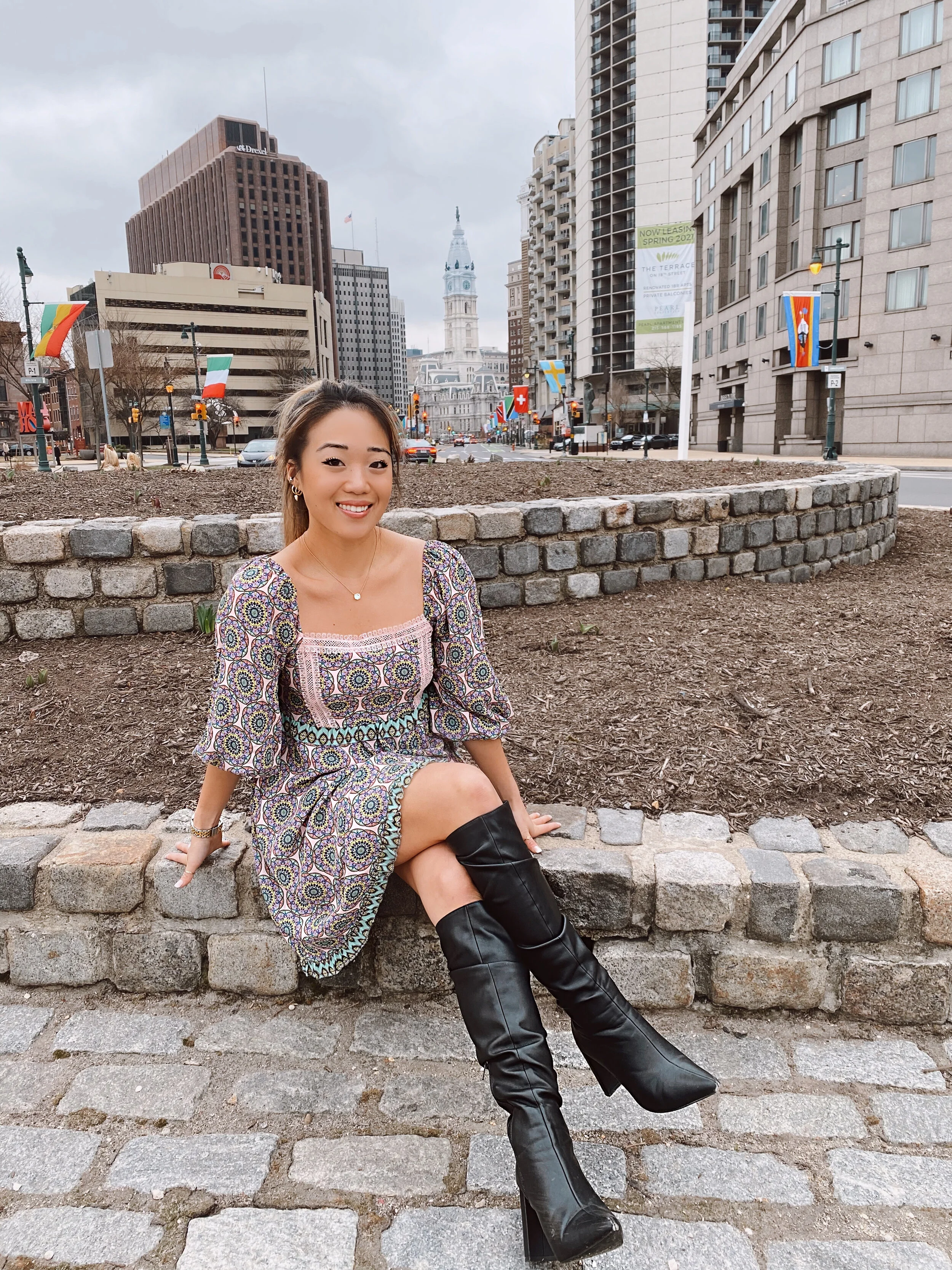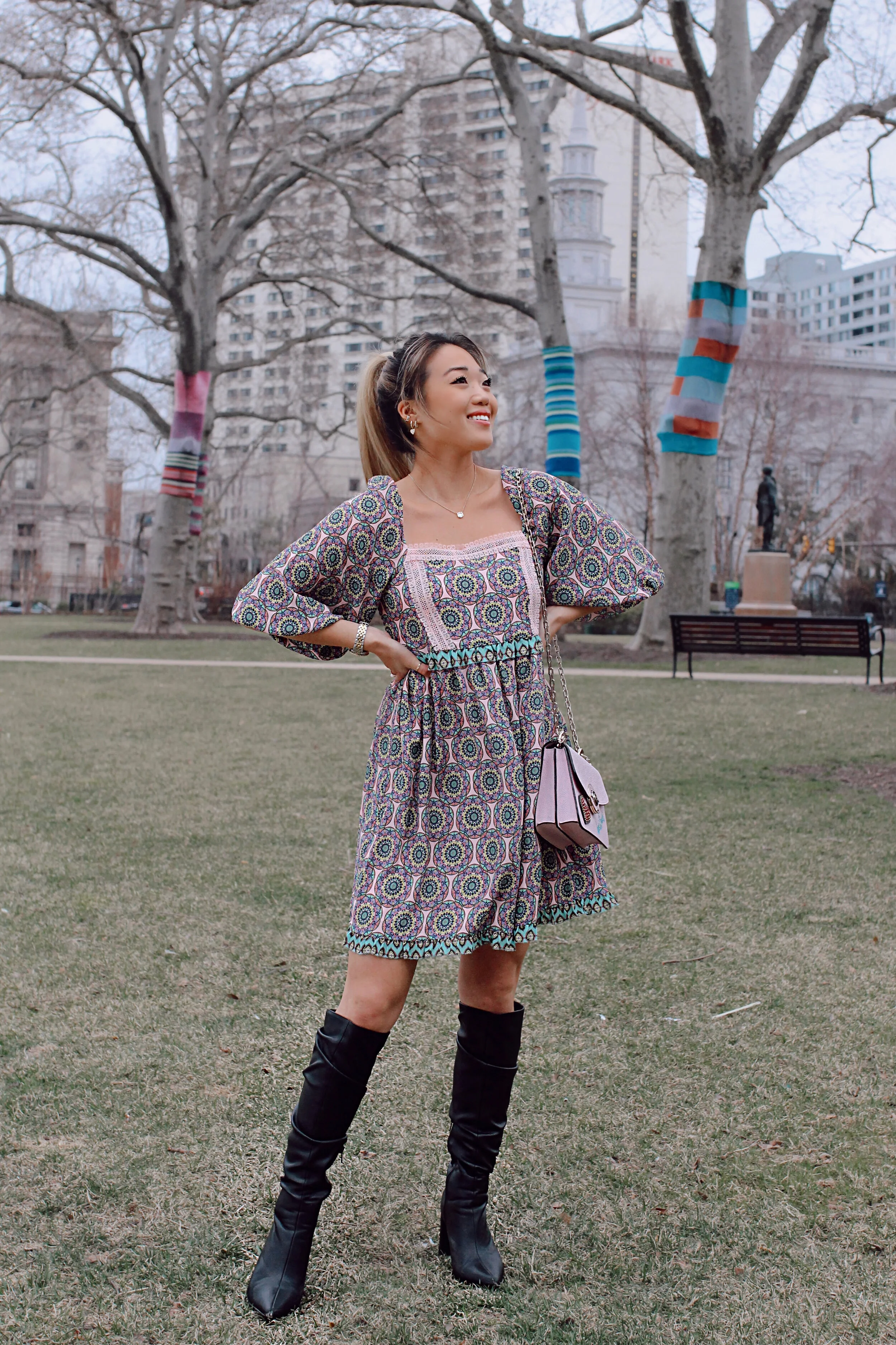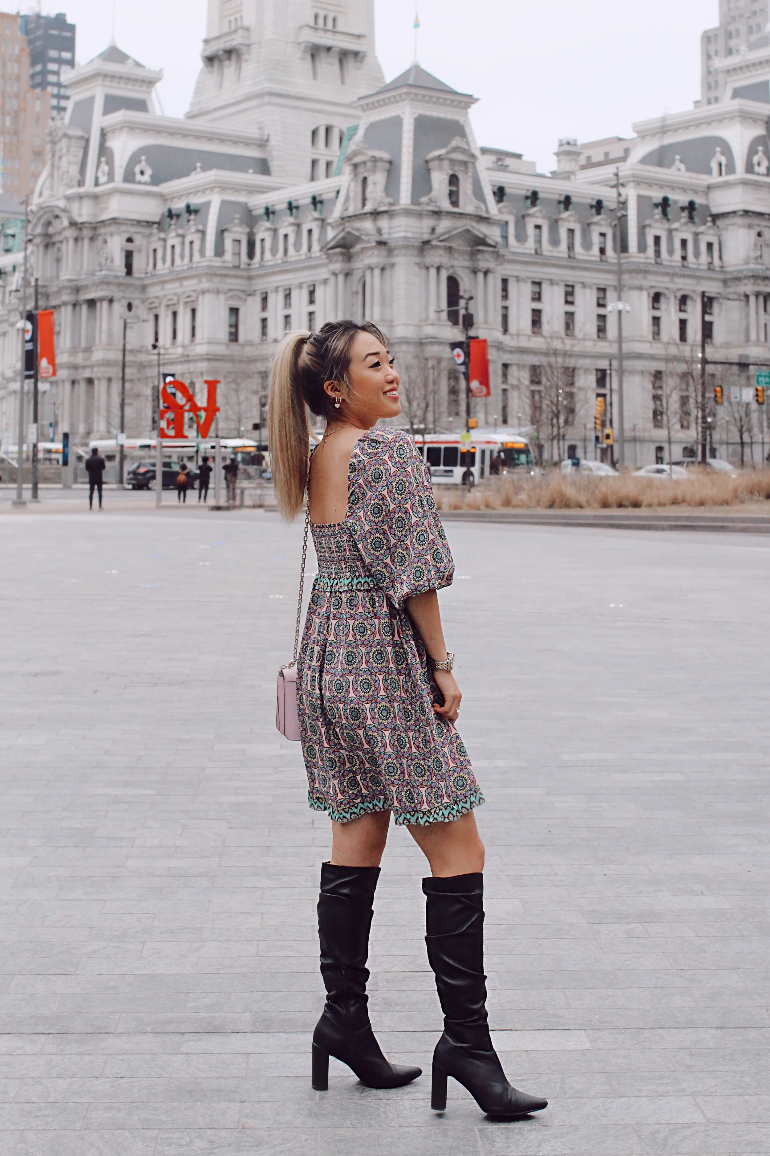 Nicole Miller dress ℅ | boots (favorite pair I’ve ever owned, hands down) | Kendra Scott necklace ℅ | Kendra Scott ear cuff ℅ | Kendra Scott gold heart huggie earrings ℅ |