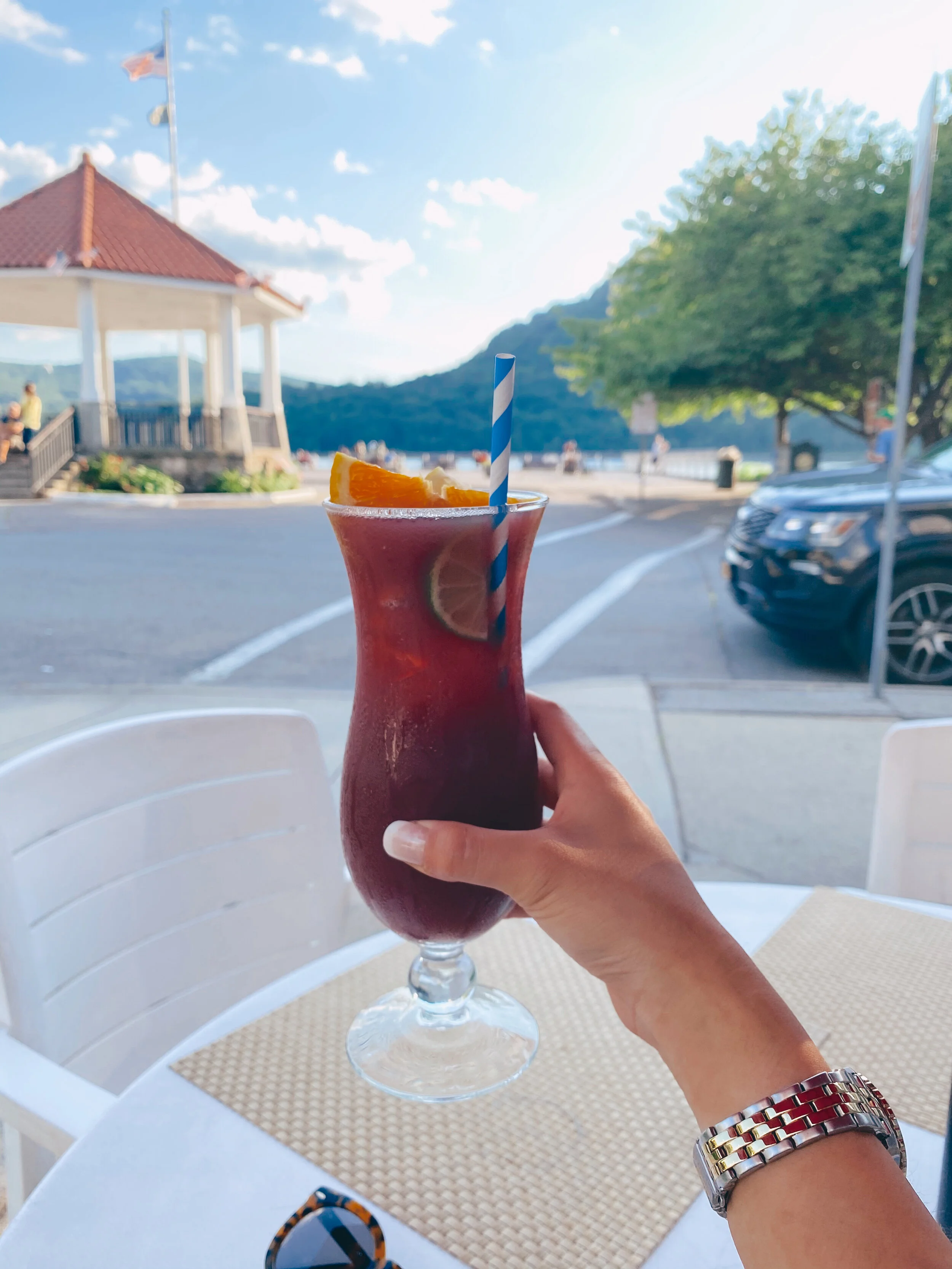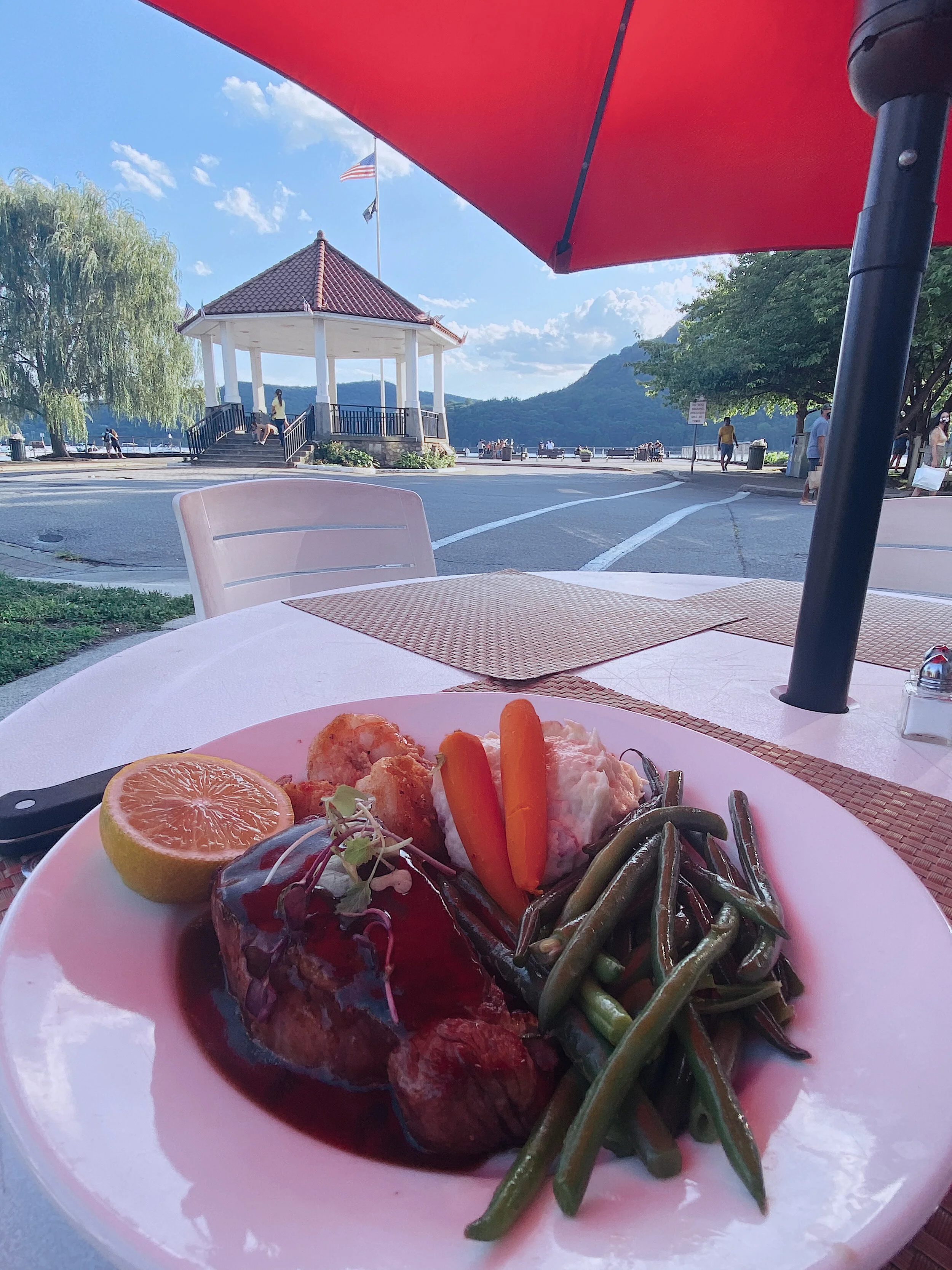 This smoothie shop we stopped at was fairly new in the area. It’s called Sweet Harvest and the girls working at the counter are the sweetest. There’s tons of smoothie options, including acai bowls, bubble tea, parfaits, salads, and more. For dinner, we ate at Hudson House River Inn Restaurant right beside the waterfront plaza. If you can get this table with the red umbrella by the corner, I highly recommend it. You can people watch and eat with a beautiful view.