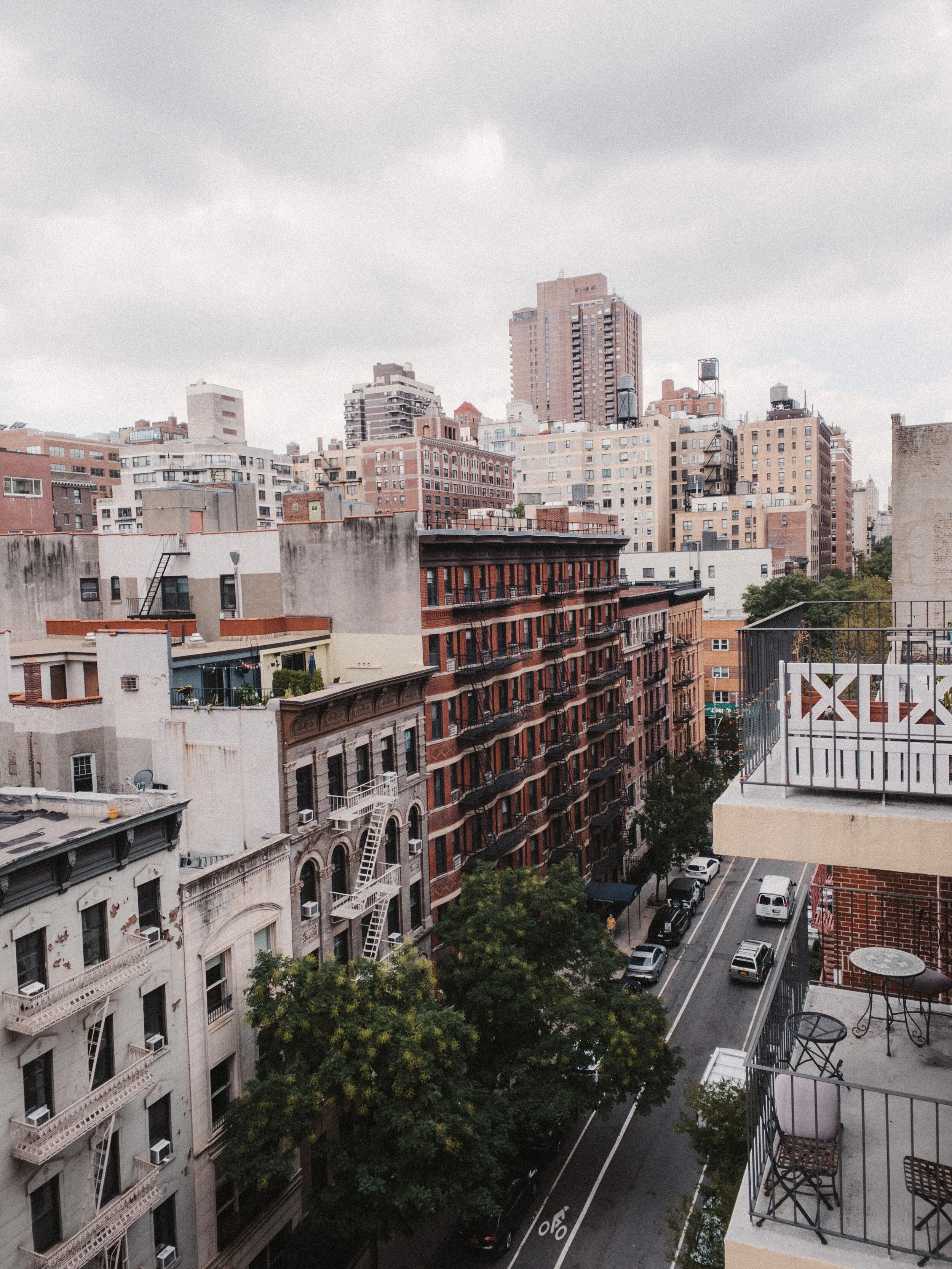 I love that this balcony overlooks a street view, but you can also spot the East River in the distance.