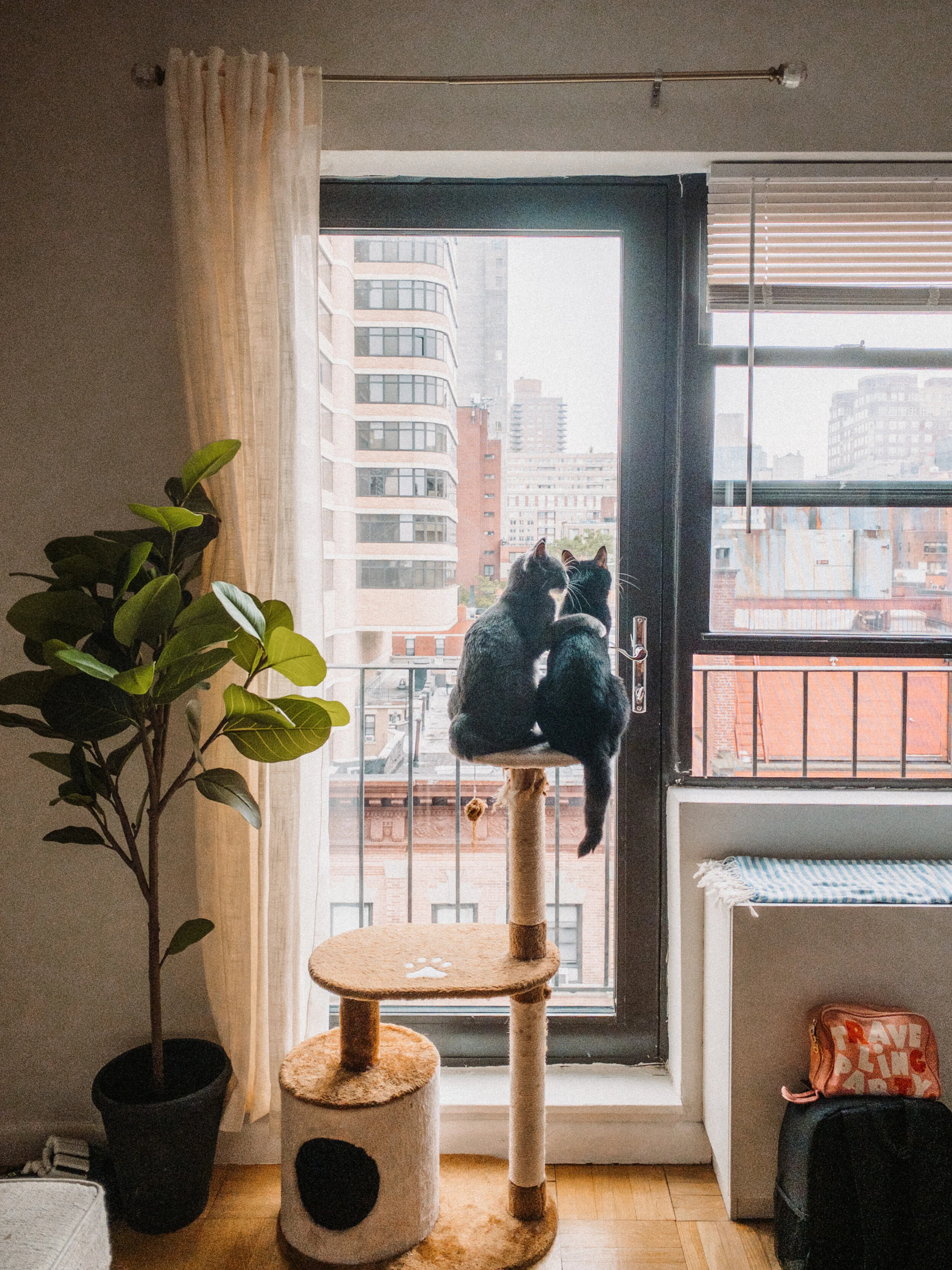 I had to include this photo in the post because I found my girls Pepper and Luna sitting on their cat tree like this overlooking the view and I thought it depicted their bond perfectly. Sometimes they’re playful and chase each other around the apartment, and sometimes they’re loving and take care of each other.
