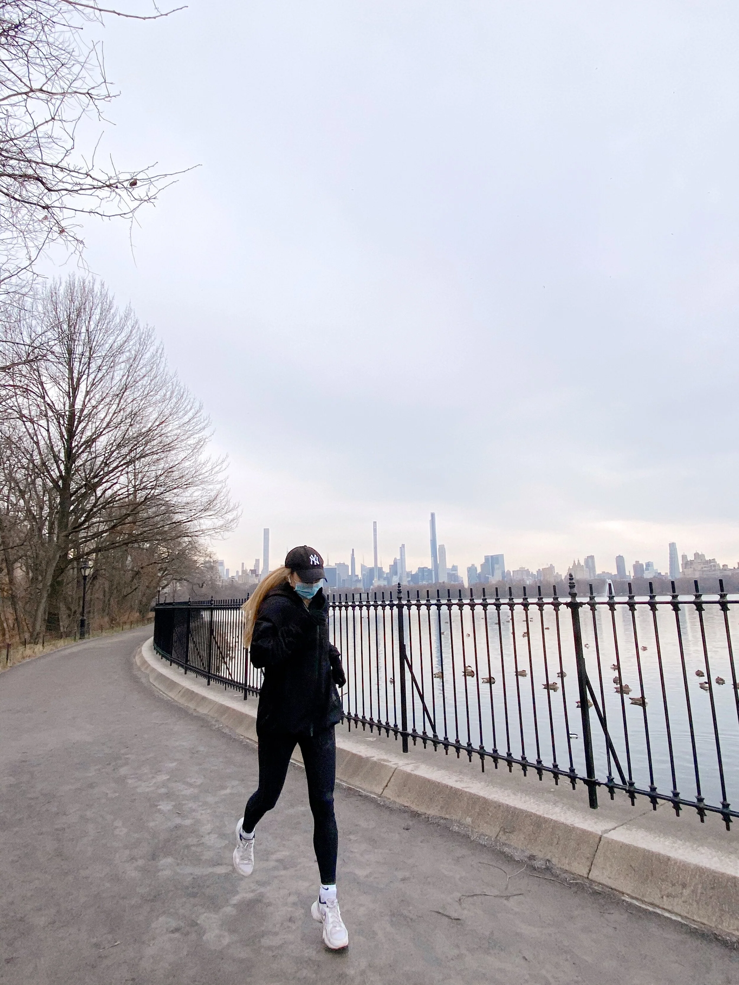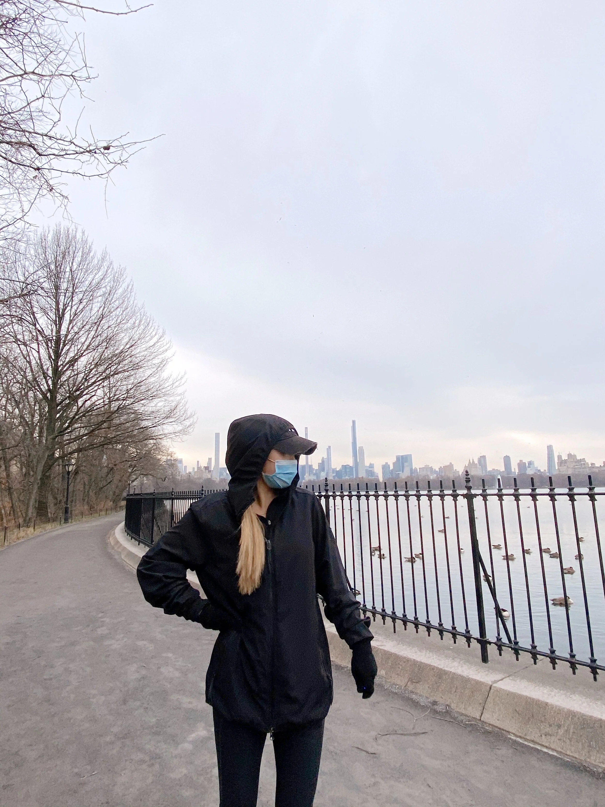 When I run, I do not. When I’m walking to Central Park, I absolutely do. I take it off right as I’m about to run and put it back on when I’m done. The running path in Central Park is pretty spaced out and I do my best to keep some distance between the other runners and myself.
